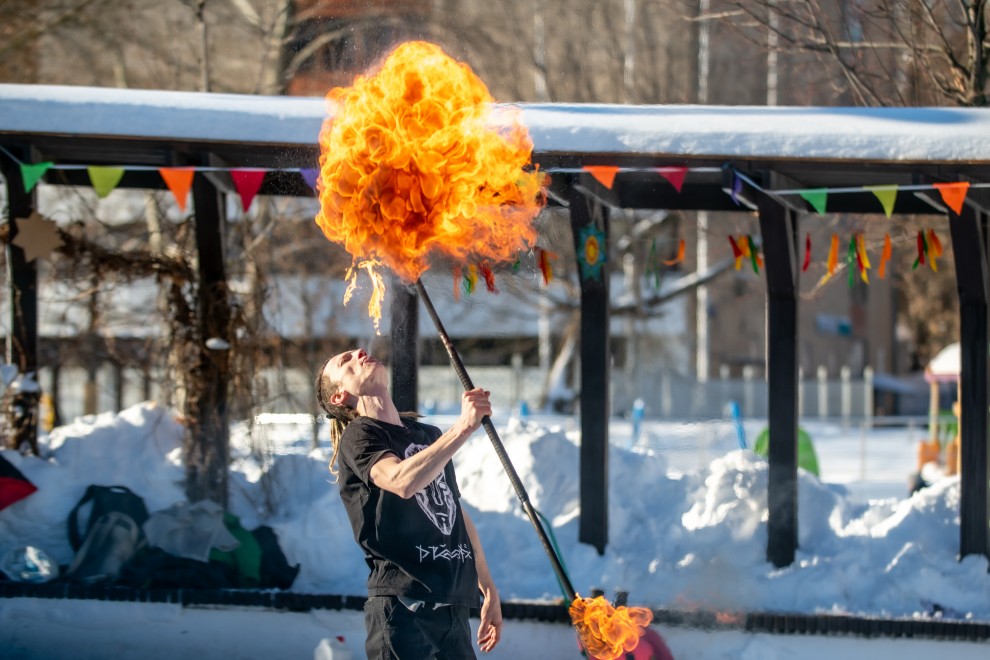 В парке «Академический» сотни жителей ярко отметили Масленицу. В нашем фоторепортаже — пестрота павлопосадских платков, азартные гонки на «лошадках» и искренний детский восторг в хороводах. Но главные кадры вечера подарила магия пламени: артисты фаер-шоу растопили сумерки горящими поями, создав фееричную альтернативу традиционному костру.