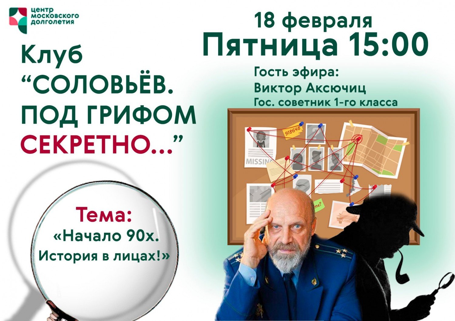 Встреча клуба «Соловьев. Под грифом секретно» пройдет 18 февраля. Начало в 15.00.