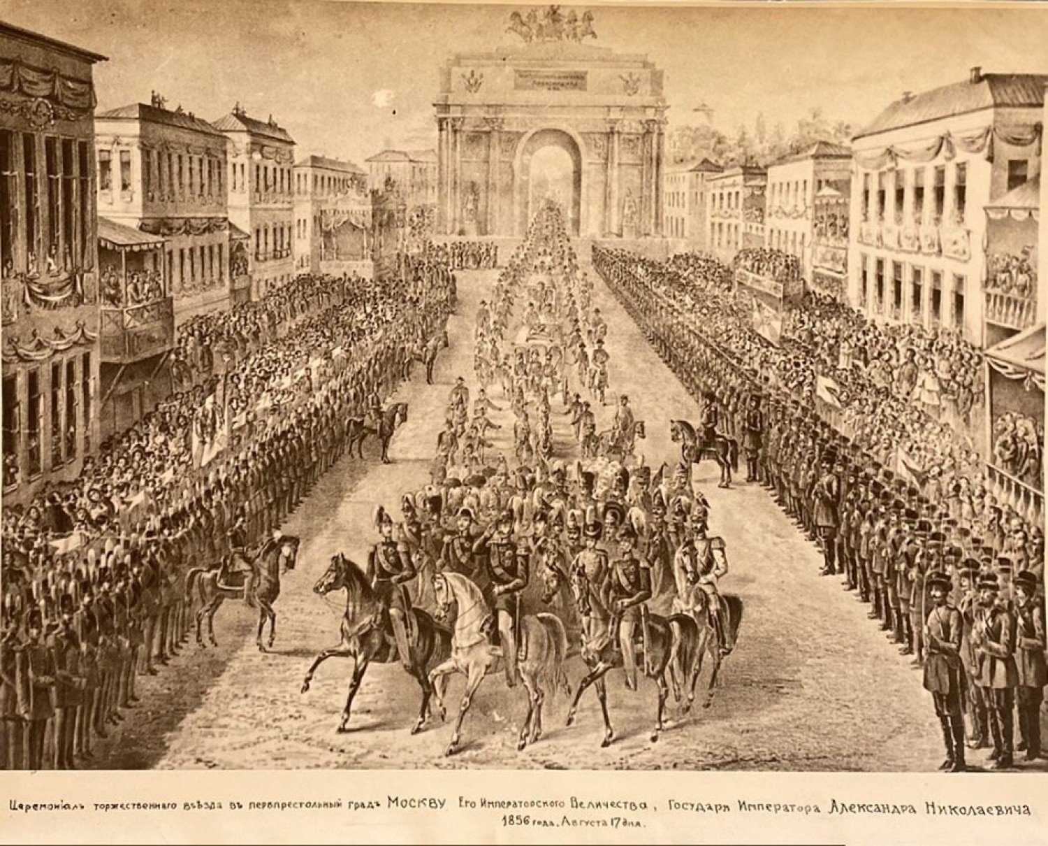 "Император прибыл в Москву 29 августа 1856 года. Здесь его встречали строгие ряды военнослужащих в парадных мундирах и жители города, которым в преддверии события раздали напечатанные объявления о коронации", - говорится в сообщении.