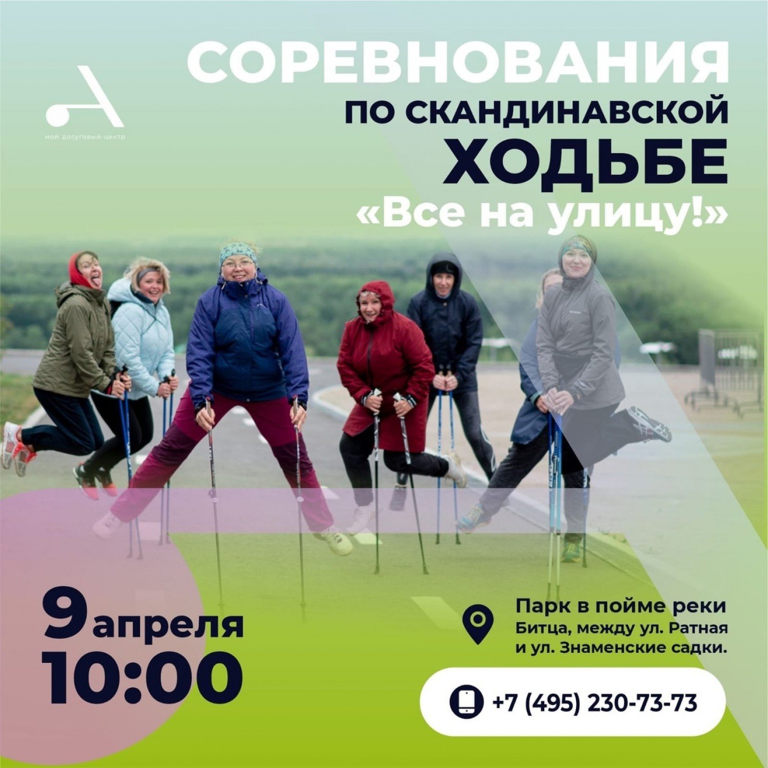 Соревнования по скандинавской ходьбе в пойме реки Битцы начнутся в 10.00, сообщается в паблике центра «Атлант» в соцсети «ВКонтакте». Они пройдут под руководством инструктора по спорту Оксаны Кукол.