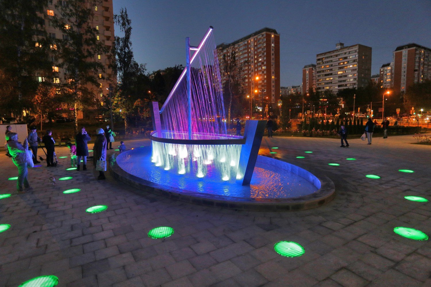 "Территорию украсил светодинамический фонтанный комплекс в виде парусной лодки. Он состоит из двух фонтанов: классического и сухого (расположенного ниже уровня земли). Вечером струи воды окрашиваются в разные цвета благодаря художественной подсветке", - говорится в сообщении.