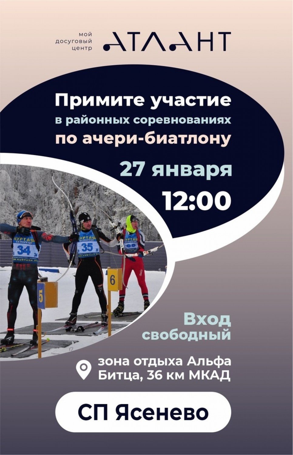 Поучаствовать в соревнования по ачери-биатлону могут все желающие 27 января. Об этом сообщается в паблике Центра спорта и досуга «Атлант» в соцсети «ВКонтакте».