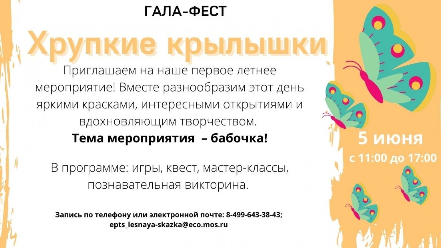 5 июня жителей ЮЗАО приглашают на гала-фестиваль «Хрупкие крылышки». Этот день будет насыщен интересными открытиями и вдохновляющим творчеством.