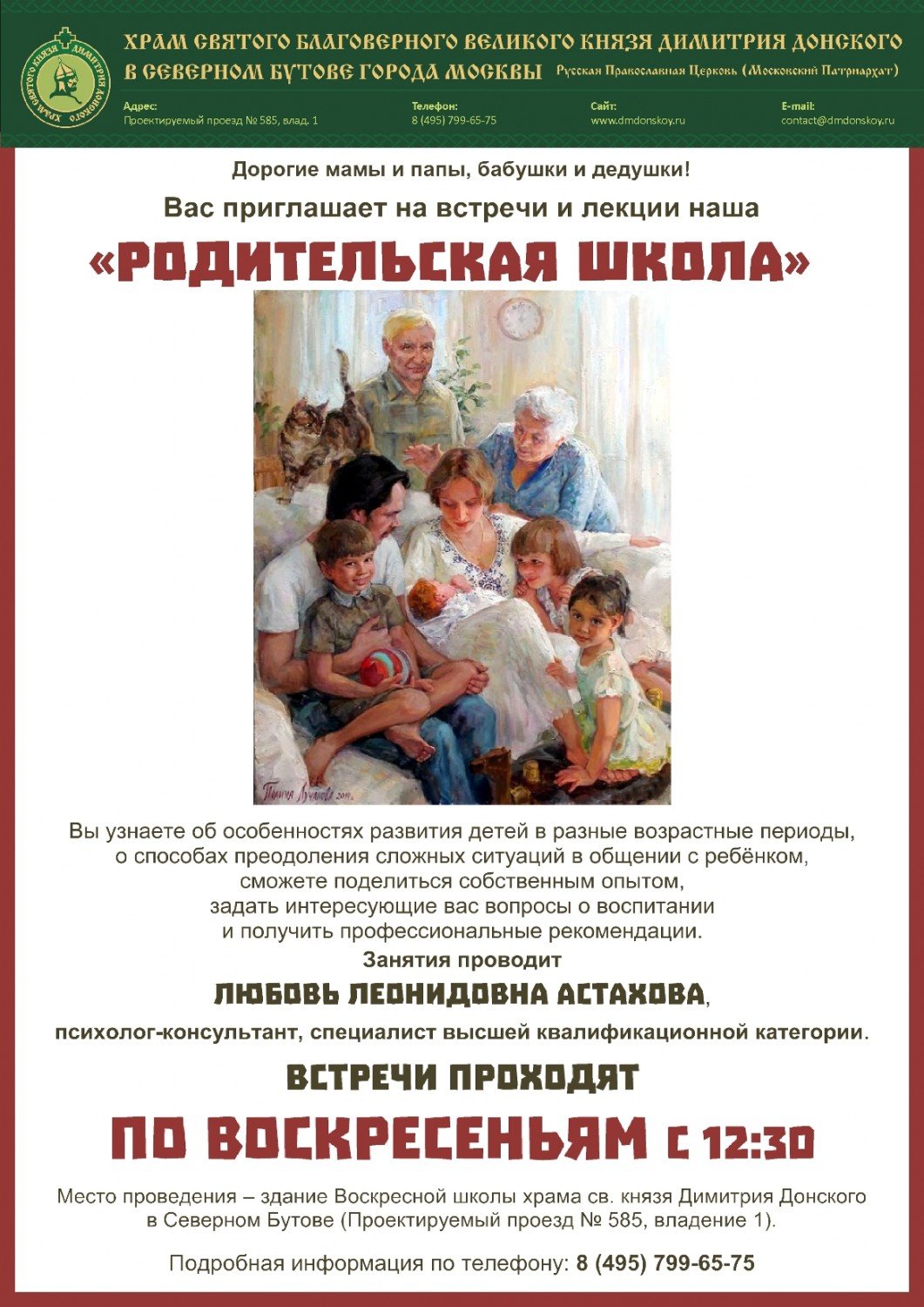 Храм св. князя Димитрия Донского приглашает на лекции «Родительской школы»