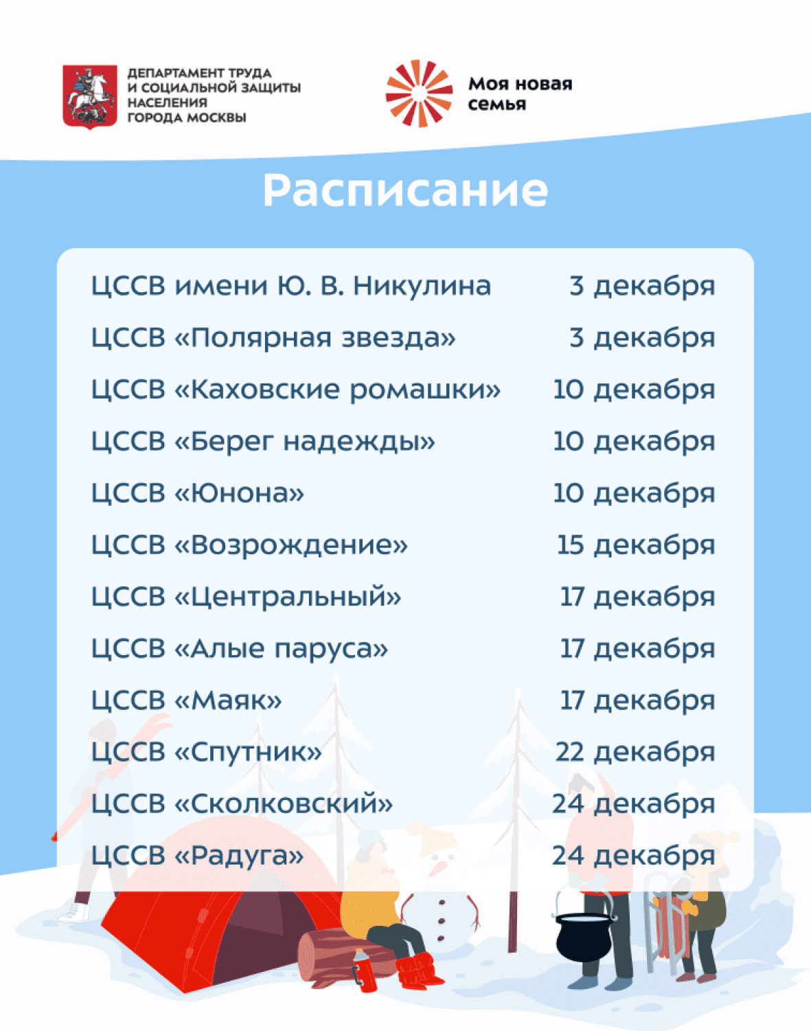 «В уходящем году в столичных центрах для детей-сирот был опробован новый формат знакомства жителей города с воспитанниками — открытые тематические активности, участниками которых мог стать любой неравнодушный москвич. Это позволило детям и взрослым пообщаться в непринужденной обстановке, разделить общие интересы. Такой формат пришелся по душе горожанам: дни открытых дверей посетили свыше двух тысяч человек. В преддверии Нового года темой встреч станет подготовка к предстоящему празднику: совместное изготовление новогоднего декора и украшение семейных групп, кулинарные мастер-классы и многое другое», — сказала начальник управления опеки и попечительства в отношении несовершеннолетних Департамента труда и социальной защиты населения города Москвы Елена Зайцева.