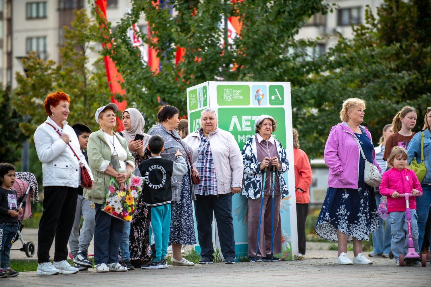 Затем гостья из Курска Наталья Тарабри прочла стихотворение о столице и исполнила легендарные «Подмосковные вечера», а студия современного танца «Дансфорс» порадовала зрителей зажигательными номерами.