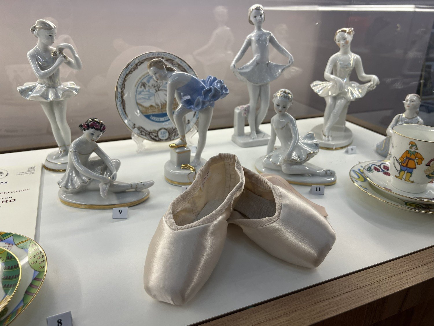 Экспозицию дополняют украшения ручной работы от мастерской Tesoro, изящные вееры и даже авторские пишущие инструменты — все это посвящение великому искусству танца. Выставка создает целостное погружение в мир балета, где хрупкость фарфора сочетается с силой характера великих артистов.