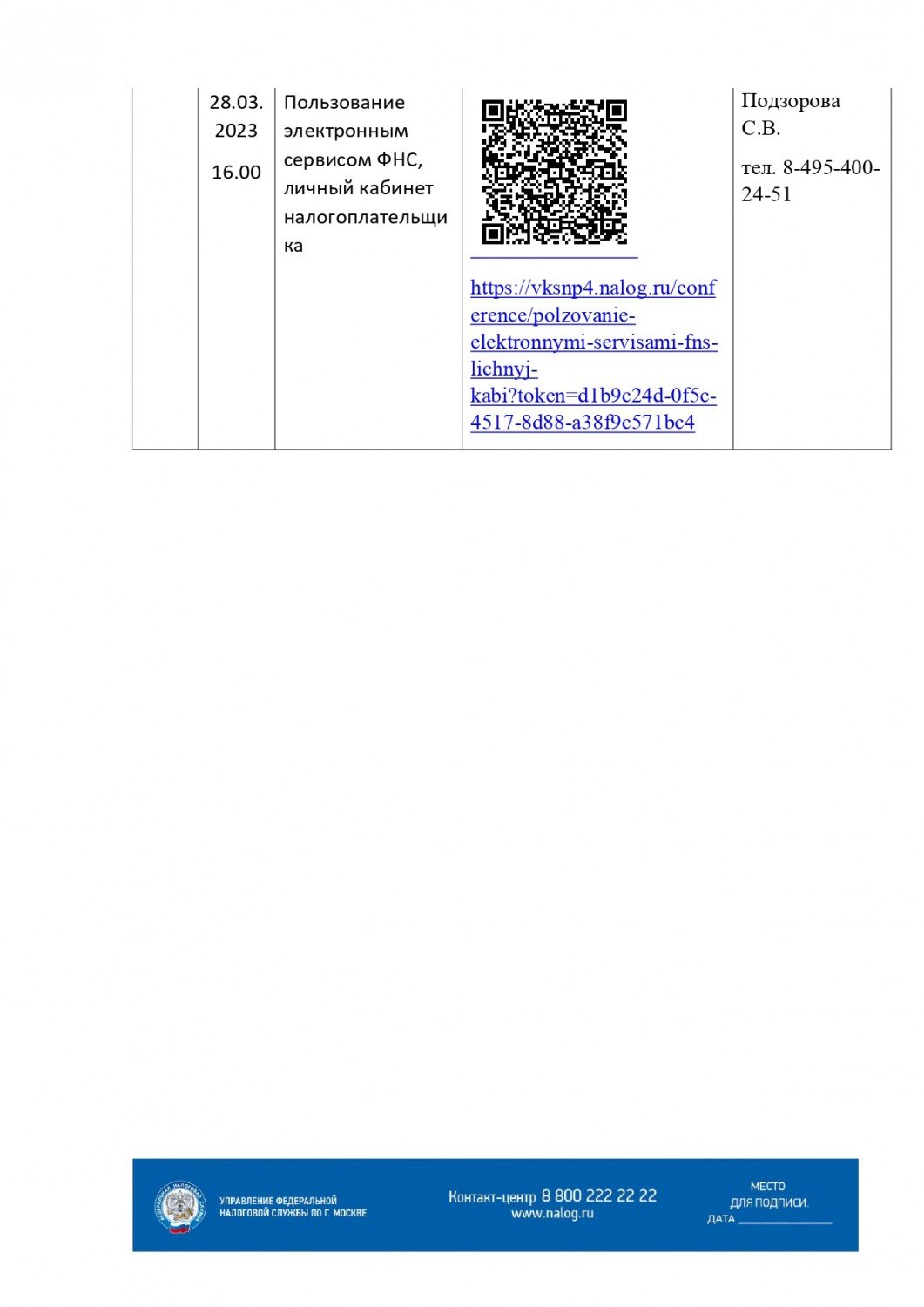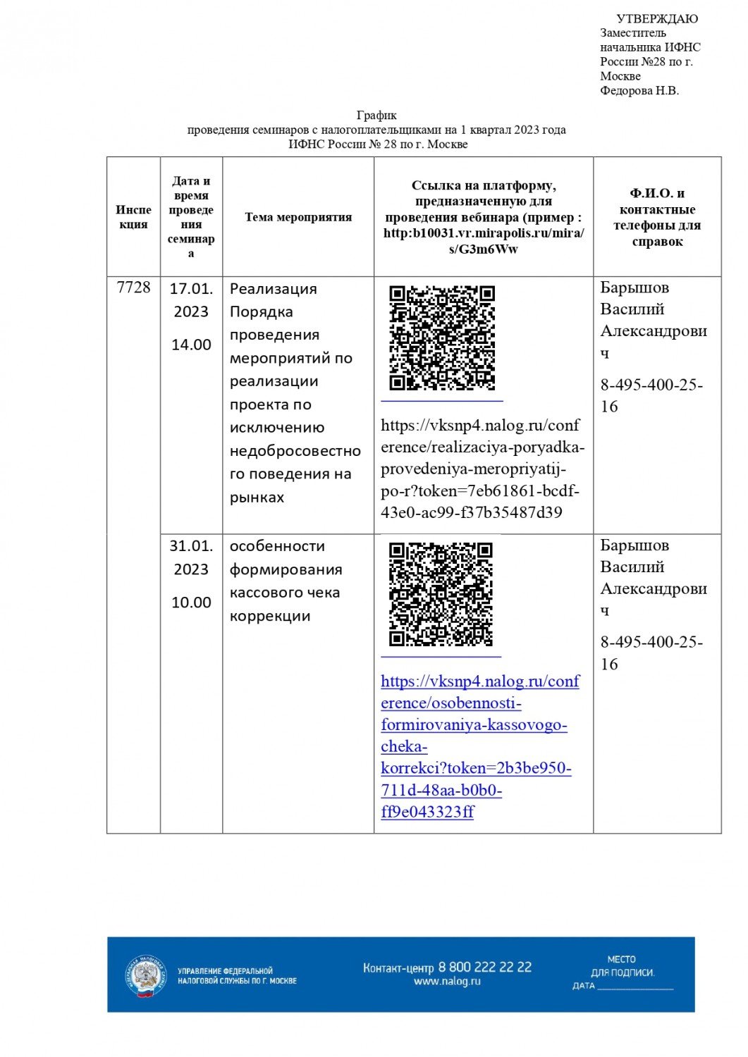 График семинаров, проводимых ФНС в 1 квартале 23 года