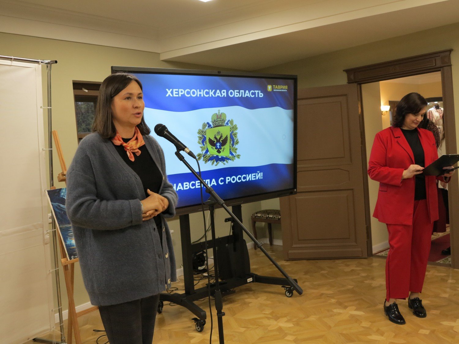 На открытии вечера куратор выставки Алиса Романова провела для гостей экскурс в концепцию проекта, рассказав о художниках, чьи работы и составили экспозицию. Погрузиться в атмосферу региона гостям помог и документальный ролик, показавший многообразие и красоту Херсонской области.
