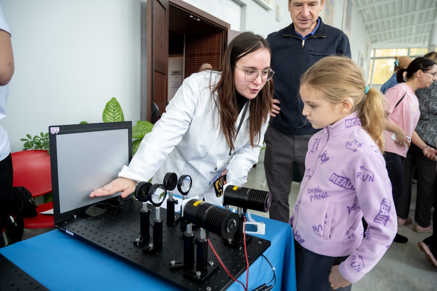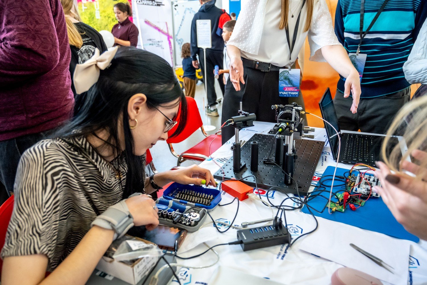 Его коллеги тут же творили «магию оптики»: с помощью зеркал и линз они превращали бесцветный луч света в яркую радугу, наглядно демонстрируя законы физики. А неподалеку каждый желающий мог почувствовать себя пилотом, тренируясь в управлении дроном.
