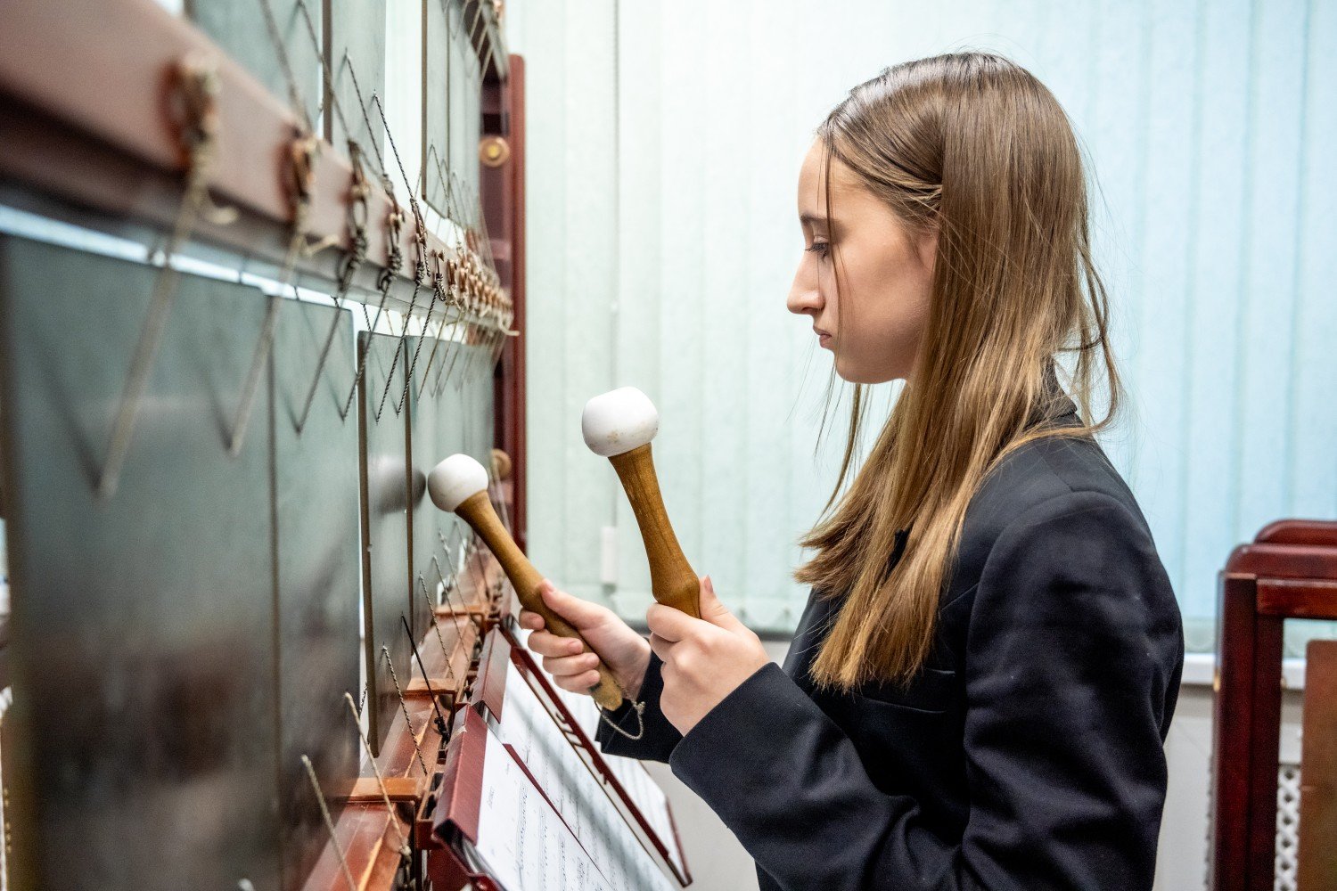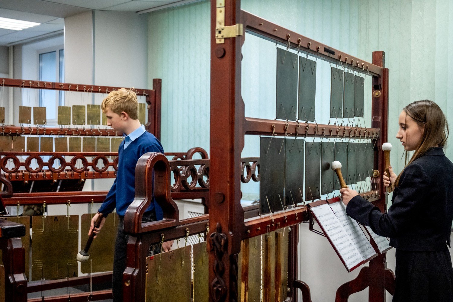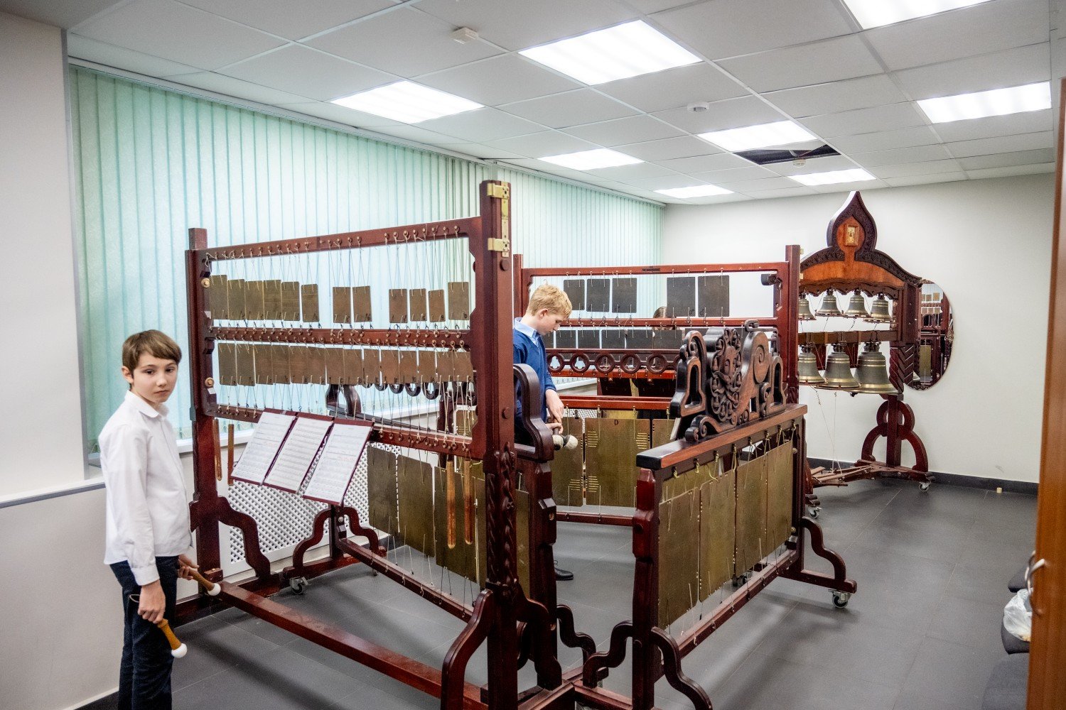 Обычно из окон музыкальных школ доносятся звуки фортепиано, скрипки или распевки хора. Но в Детской музыкальной школе имени А.М. Иванова-Крамского, расположенной в Юго-Западном округе Москвы, можно услышать нечто иное — настоящий колокольный перезвон. Уже более двадцати лет здесь работает уникальный класс, где древняя традиция встречается с академическим образованием, а ученики играют на инструменте, который веками созывал людей на службу.
