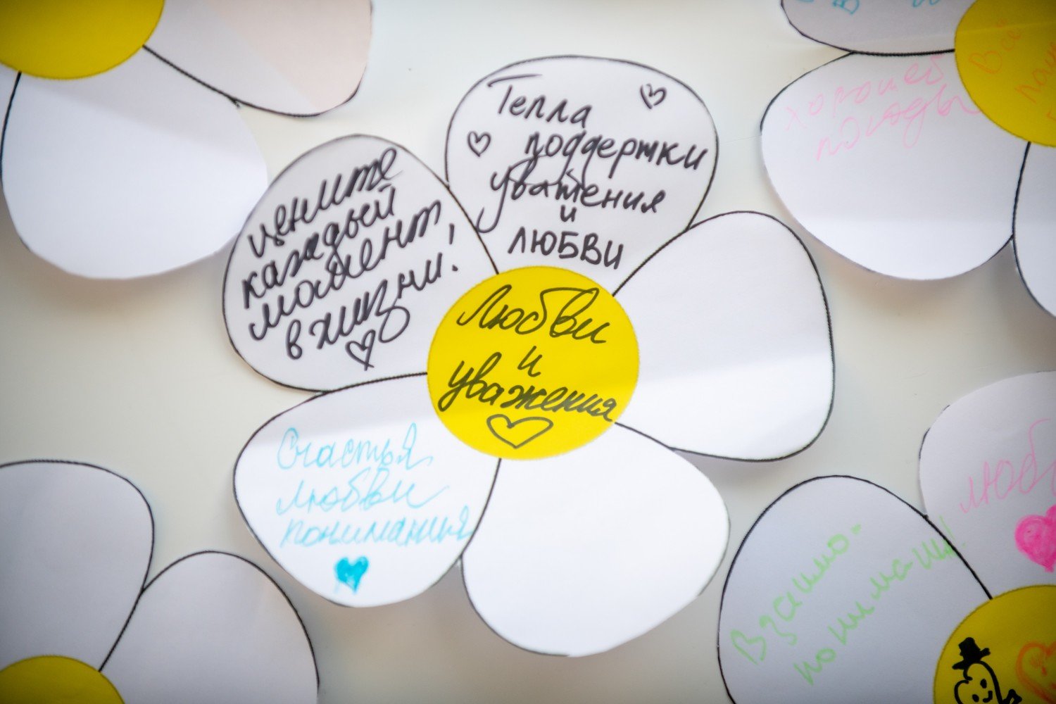 Во время праздника свободные девушки загадывали желание встретить свою судьбу, а замужние участницы поделились секретами крепкого брака, записав их на символичной доске из бумажных ромашек.