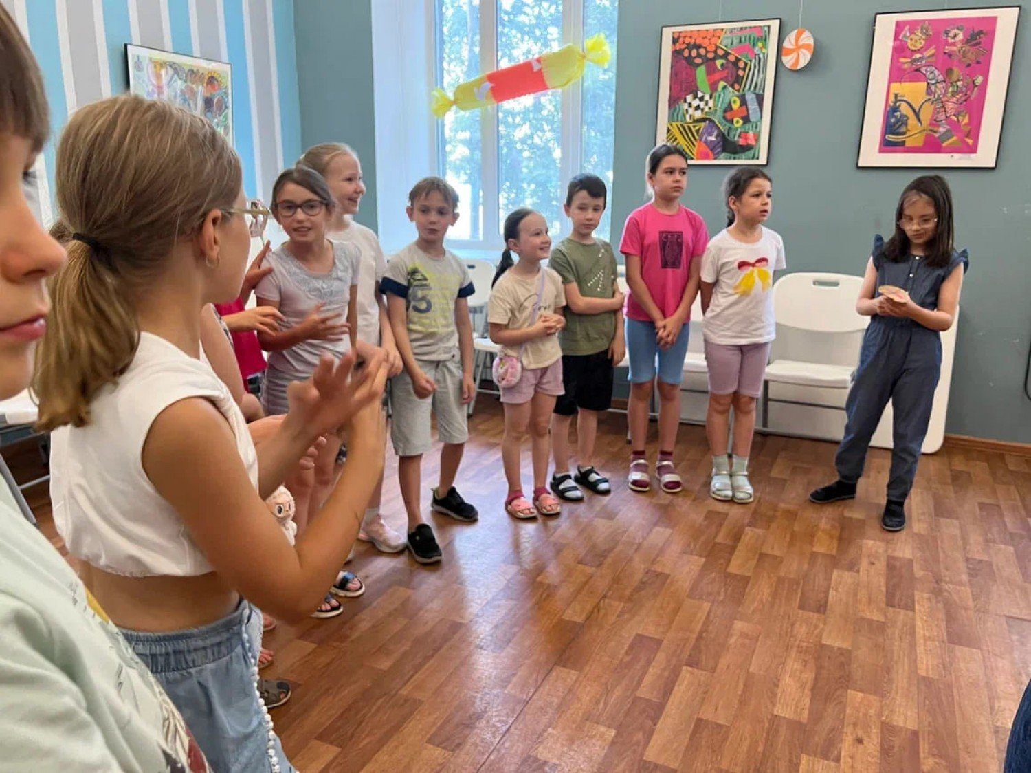 Дети старались выполнить задания и совместно искали ответы на каверзные вопросы от ведущих праздника, а родители терпеливо ожидали в холле, периодически заглядывая за шторку, чтобы самим побольше узнать о новостях из шоколадной фабрики, возникшей в стенах учреждения. А победила, конечно же, дружба.