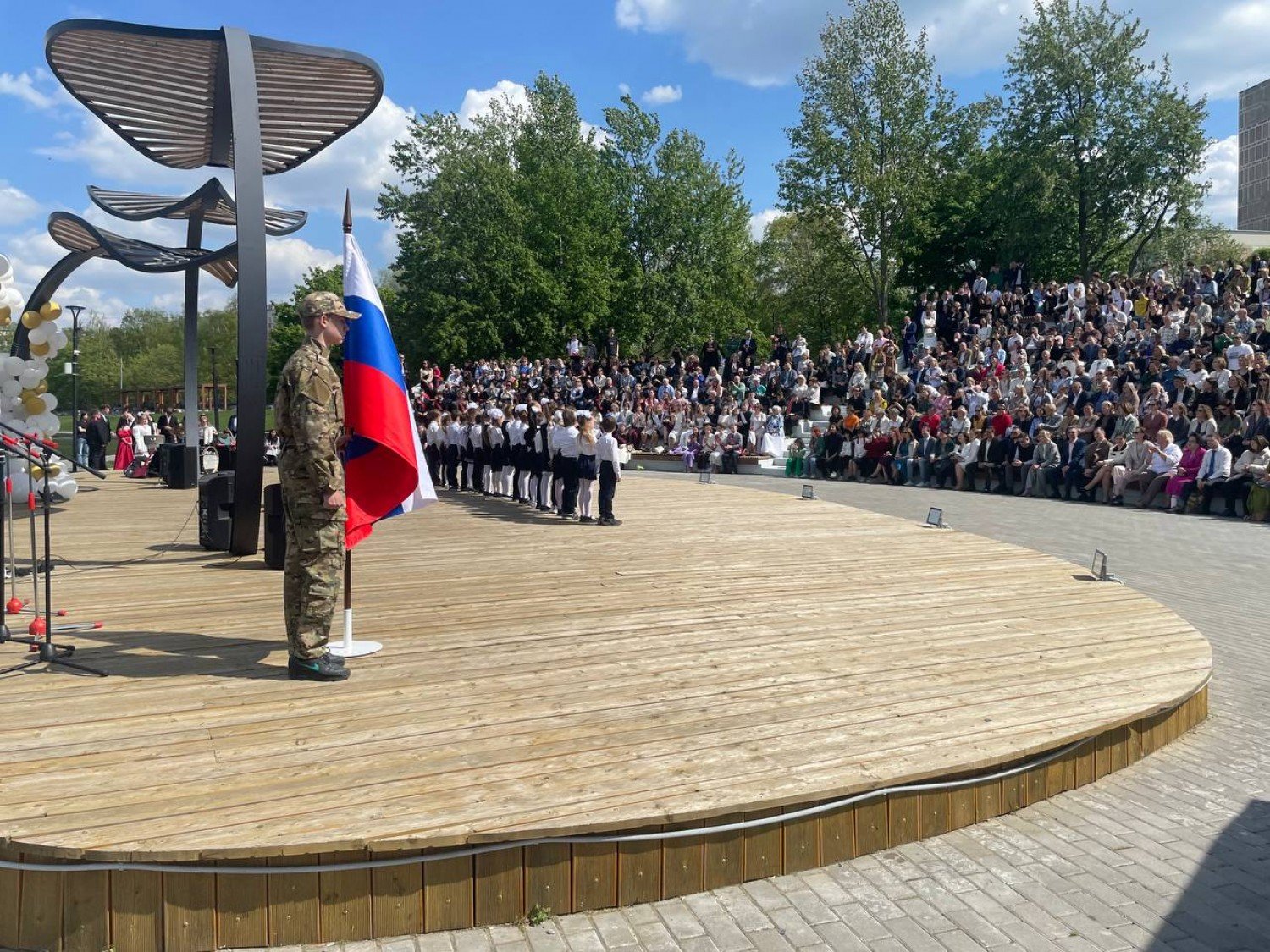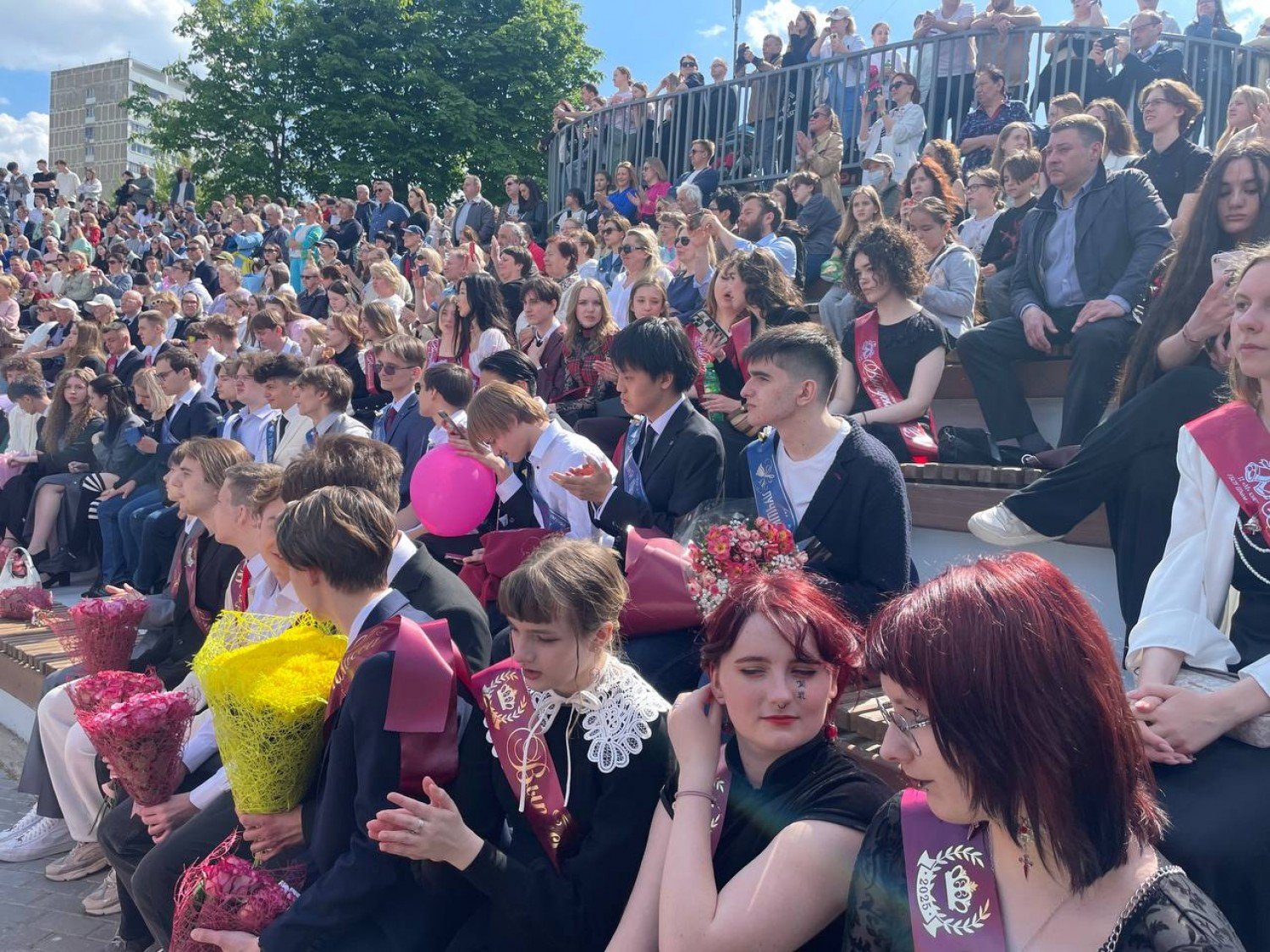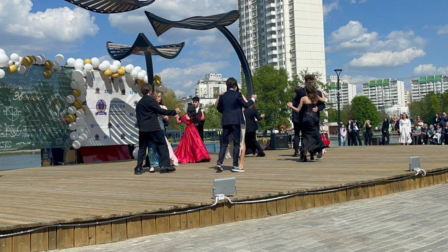 Обычно последние звонки принято проводить во дворах школ, но ученикам «семнадцатой» повезло куда больше – у них прямо недалеко раскинулись облагороженные Коньковские пруды, где есть сцена, куда вместительнее любого актового зала. В час дня здесь уже начали собираться люди: и родители, и учителя, и сами герои сегодняшнего дня – выпускники.