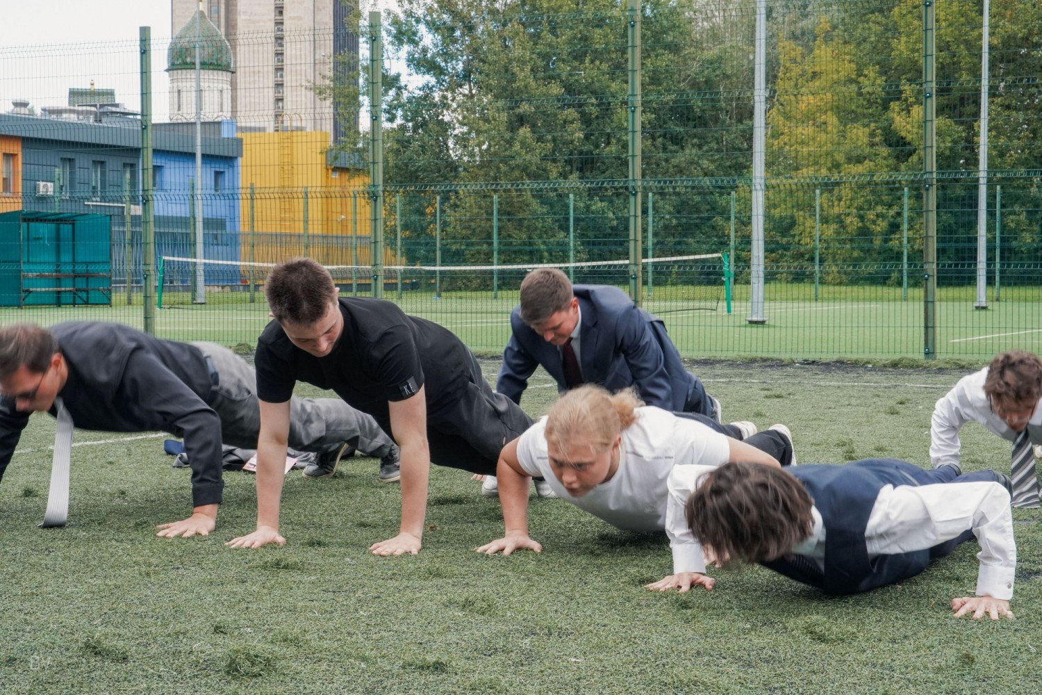 Отправной точкой квеста стала площадка физкультурно-оздоровительного комплекса «Дружба». Здесь новым студентам предложили выполнить несложные упражнения и блеснуть физической формой: девушки качали пресс, а юноши отжимались. Всюду слышался смех и слова поддержки от одногруппников. Тренеры ФОКа с задором приглашали всех на занятия в спортивные секции, которых в РУДН действует множество на любой вкус.