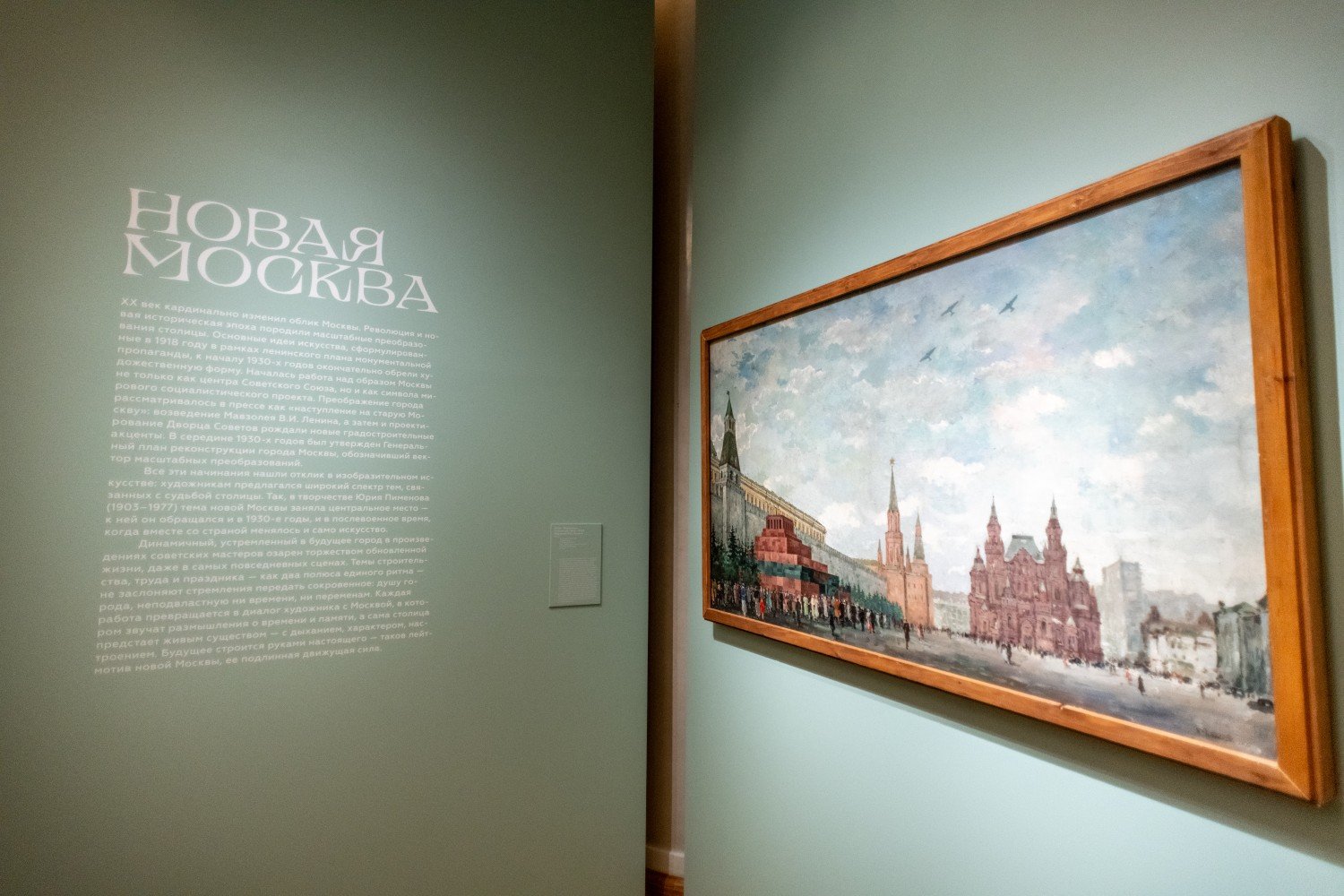 «Новая Москва», как легко догадаться по названию, посвящена годам не столь отдаленным. Здесь можно увидеть исключительно работы художников, написанные с 1920 по 2010 года. В этот период город менялся и модернизировался, переходил от конных повозок к трамваям, открывалось метро, расширялись эстакады…