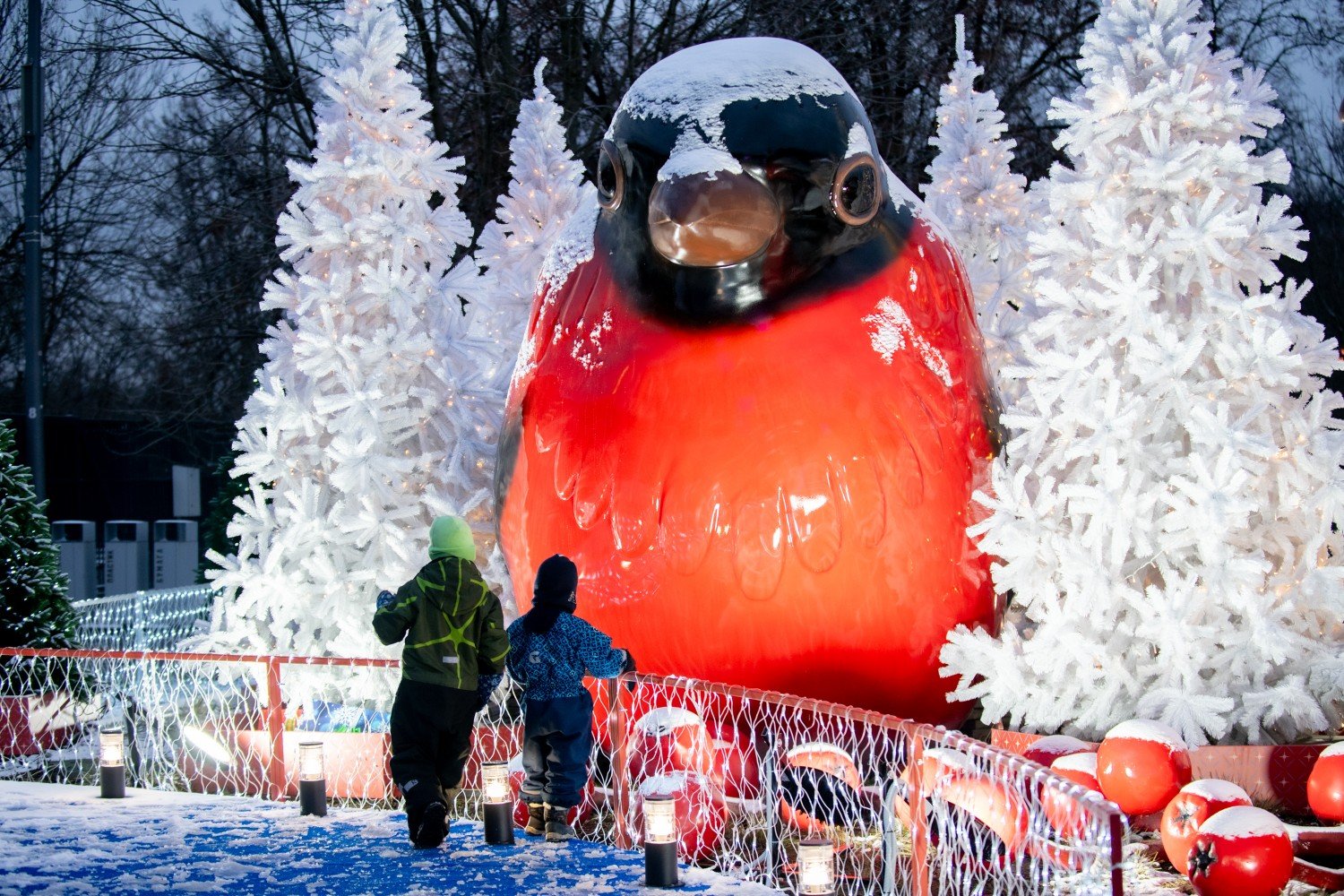 Если каток отвечает за спортивный дух, то за визуальную магию — передовые световые инсталляции. Организаторы объединили природу и цифру: прогуливаясь по парку, гости встречают объемные голограммы животных из Красной книги России. Они не просто статичны — звери двигаются, издают характерные звуки и даже приветствуют детей.