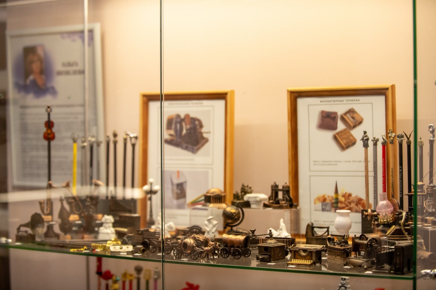 Прогулка по экспозиции — это путешествие по увлечениям разных людей. Ради открытия выставки из Нижнего Тагила прилетела Наталья Мехоношина. Ее коллекция насчитывает более трех тысяч авторучек, и лучшую ее часть теперь можно увидеть в Москве.