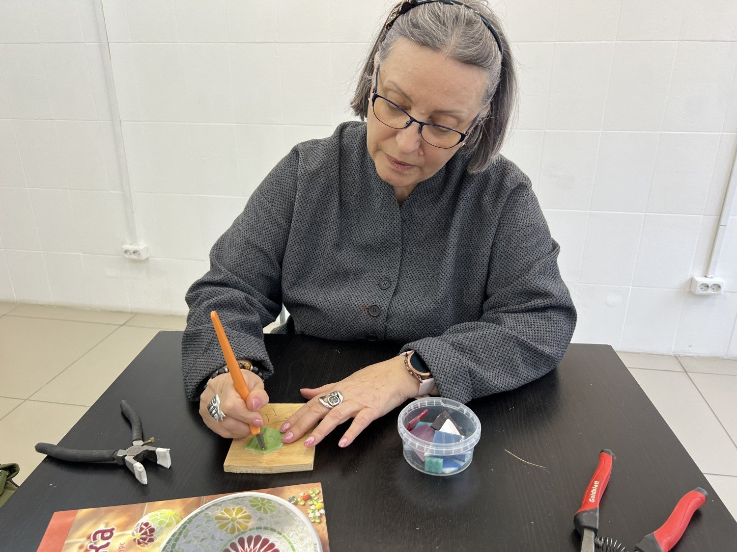 «Когда я сажусь за мозаику, я забываю обо всем. Могу провести за работой и четыре, и восемь часов. В это время я целиком нахожусь в творчестве», — признается художница.