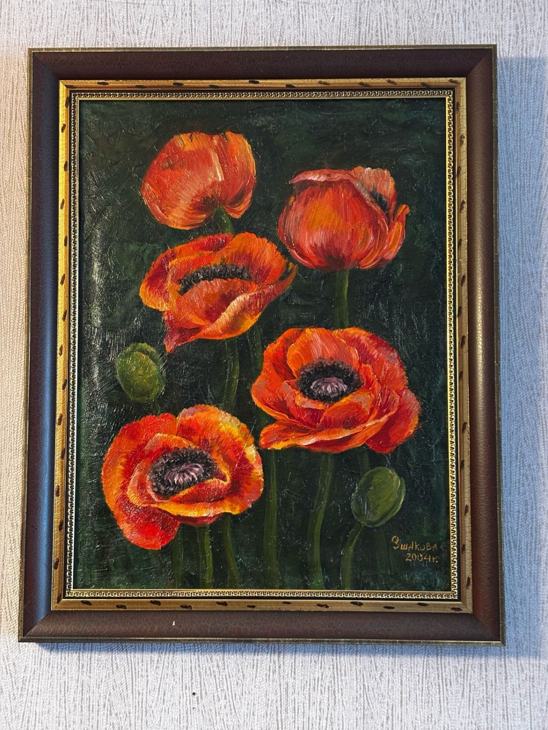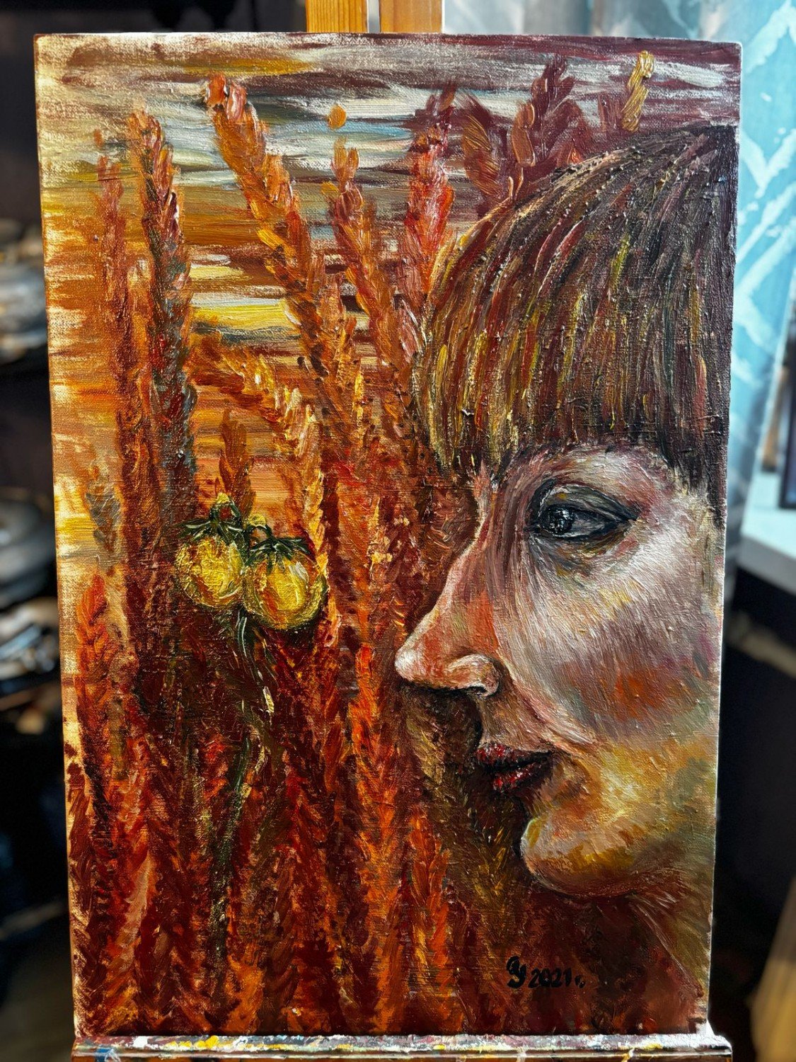 Картины Ольги Ушаковой разнообразны. Она признается, что маслом пишет то, что было бы понятно всем окружающим: красные маки, натюрморты, солнечные ромашки и девушки на качелях. Выставку открывают именно такие работы. Натюрморт с уткой — богато заставленный стол с фруктами, овощами, только что подстреленной уткой и штоф. На полотне отлично сочетаются все его элементы, отправляя нас к сценам после охоты XVIII-XXI века.