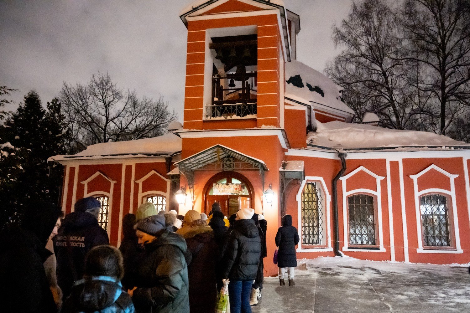 К пяти часам вечера к храму Живоначальной Троицы в Воронцове начали стекаться верующие. Праздничная служба собрала десятки прихожан, желающих встретить Богоявление в стенах старинной усадьбы.