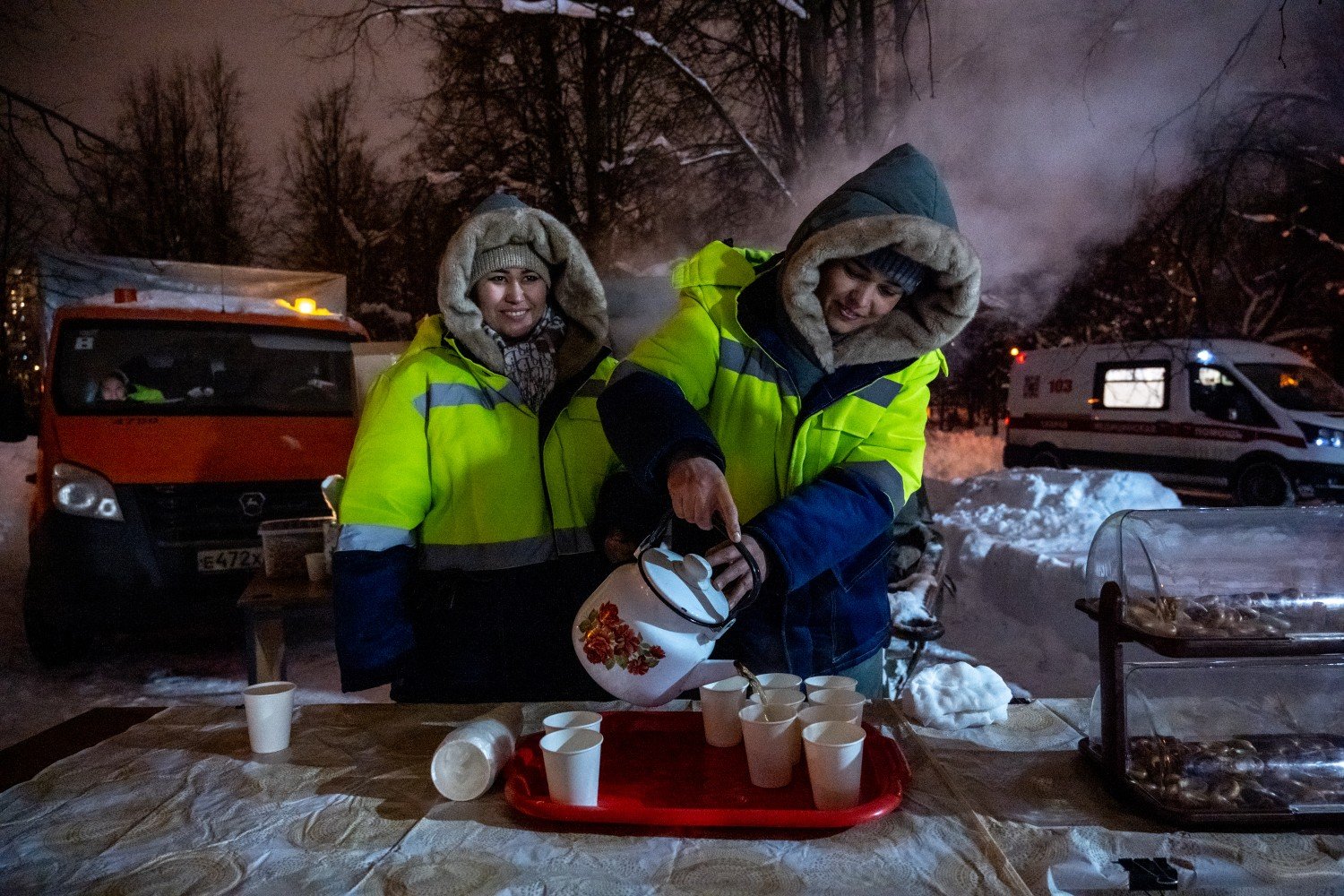 К моменту прибытия процессии к пруду очередь желающих окунуться растянулась на десятки метров. Для комфорта и безопасности организаторы предусмотрели все необходимое: у воды оборудовали теплые раздевалки и полевую кухню, а за порядком и здоровьем граждан следили наряды полиции, спасатели и бригада медиков.