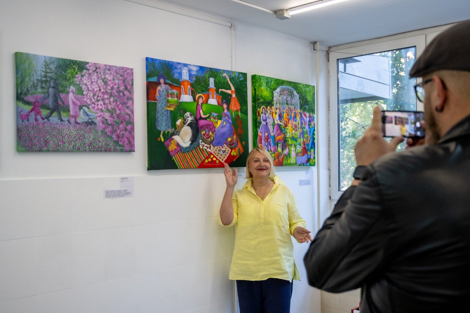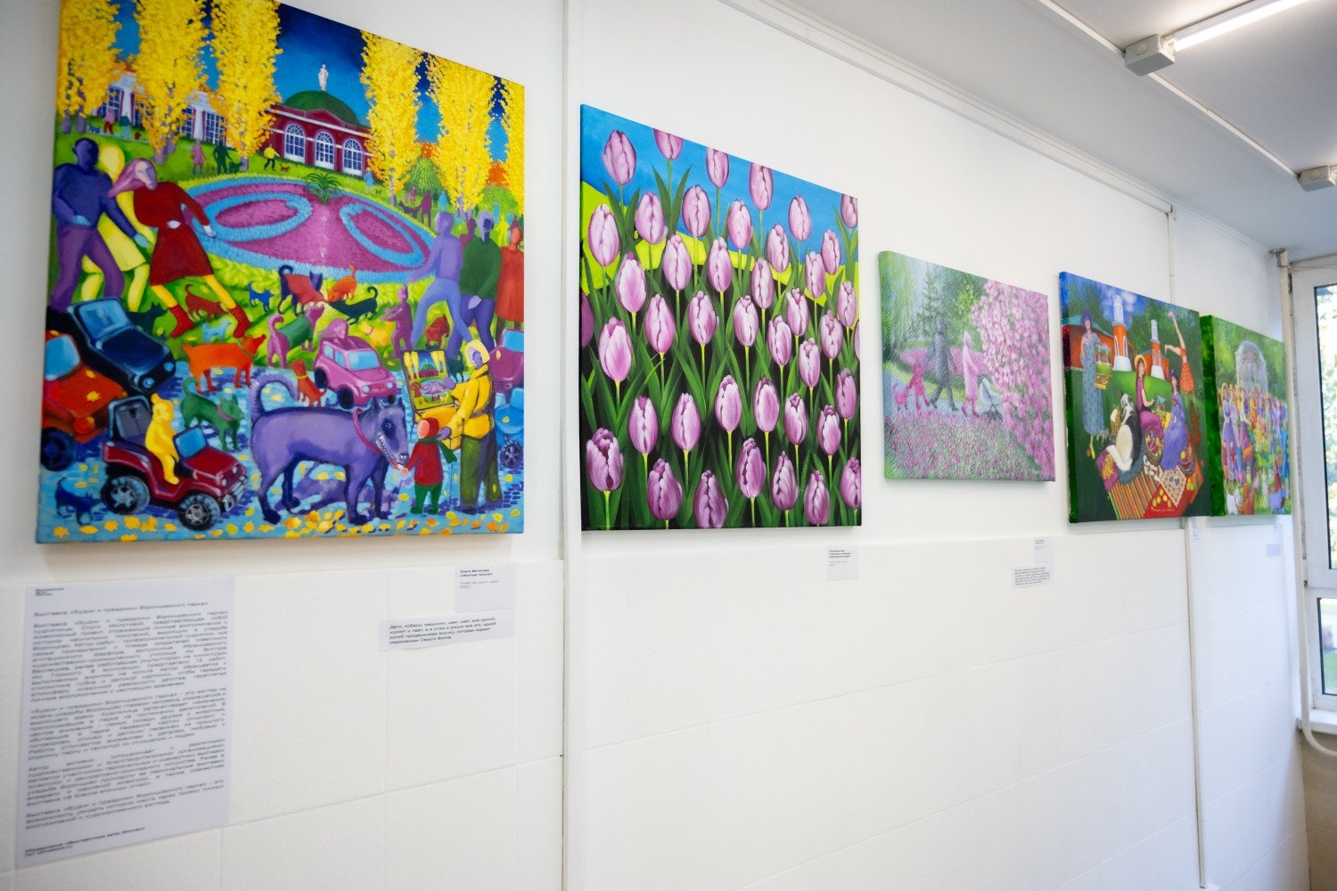 Есть на выставке и своя интрига. На картине «Тюльпаны у Большого Воронцовского пруда» художница оставила «задел на будущее». Ольга раскрывает секрет: работа еще не закончена. После закрытия выставки она планирует дописать ее, и тогда сквозь цветы будут проглядывать лодочки на пруду и летние насекомые.