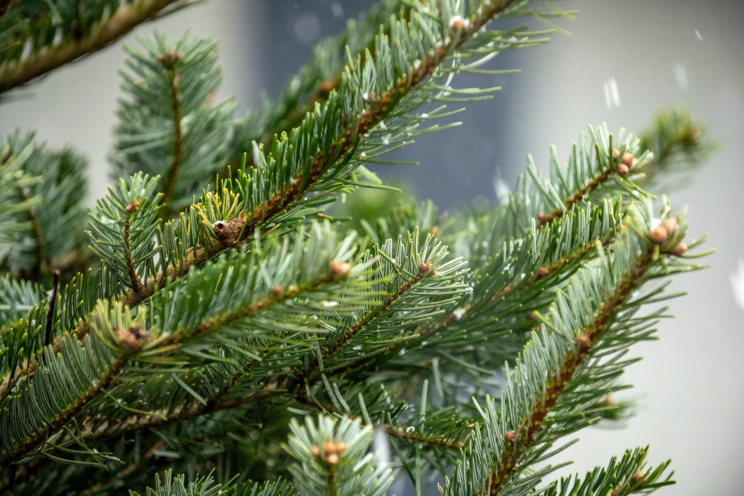 - Осмотрите хвою. Иголки должны быть насыщенного зеленого цвета, гибкими и прочно держаться на ветках.