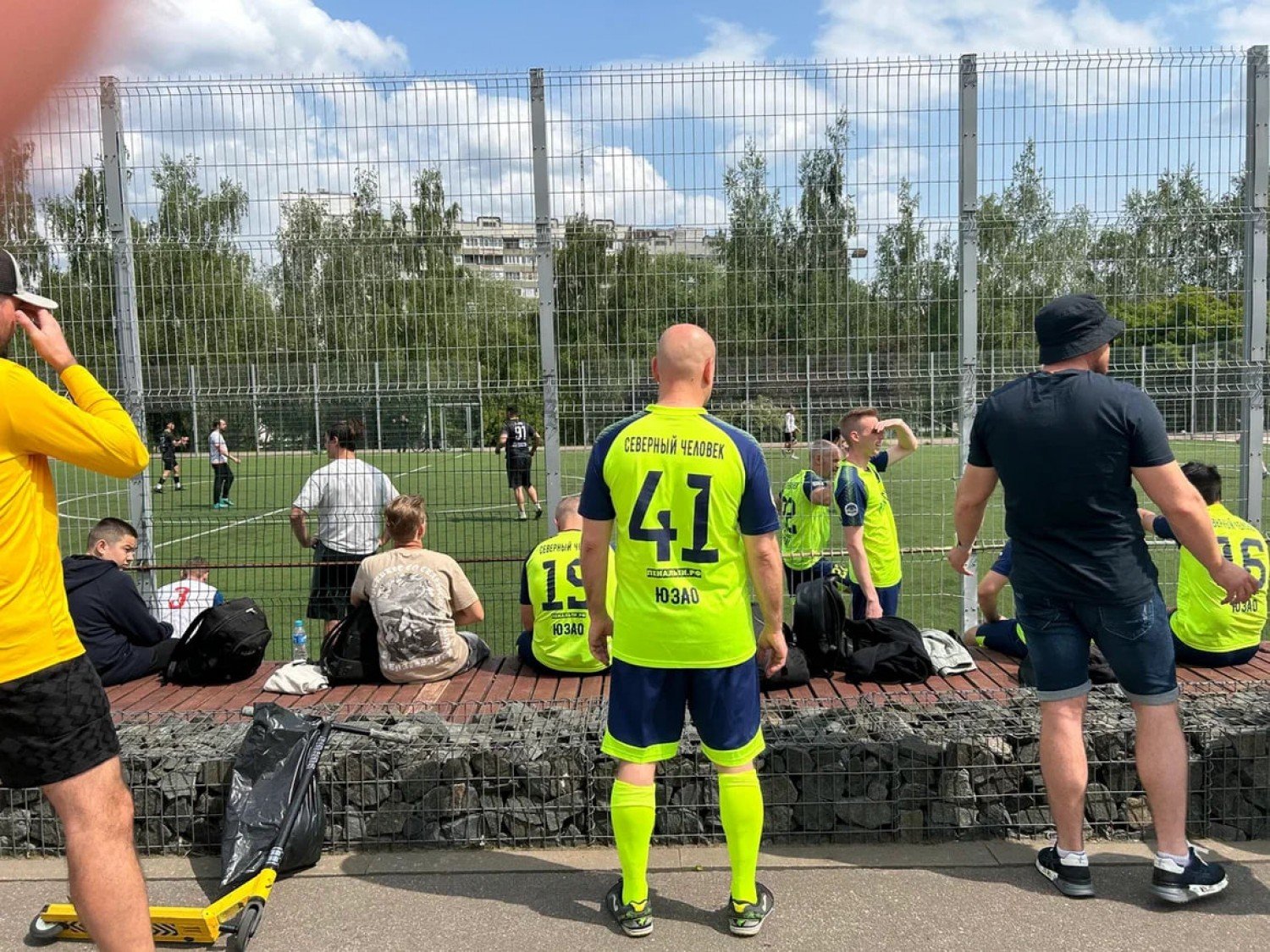 Здесь, на футбольном поле в пойме реки Битца, действительно кипели страсти: каждая команда пыталась завоевать победу в этот знаковый для всех россиян день. Помимо забитых голов и красивого футбола, на площадке были кувырки, подножки и даже разбитый в пылу борьбы нос одного из игроков.