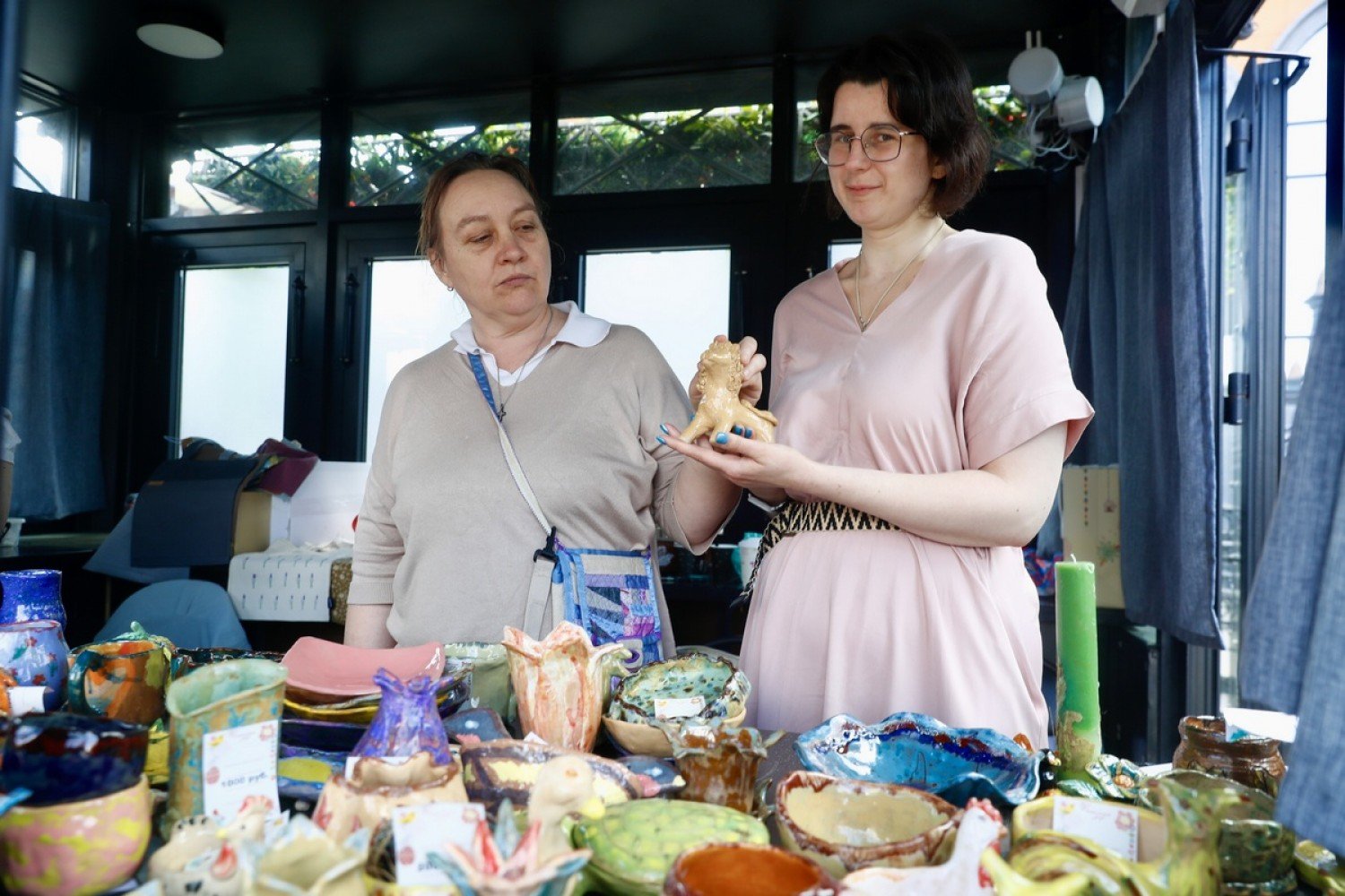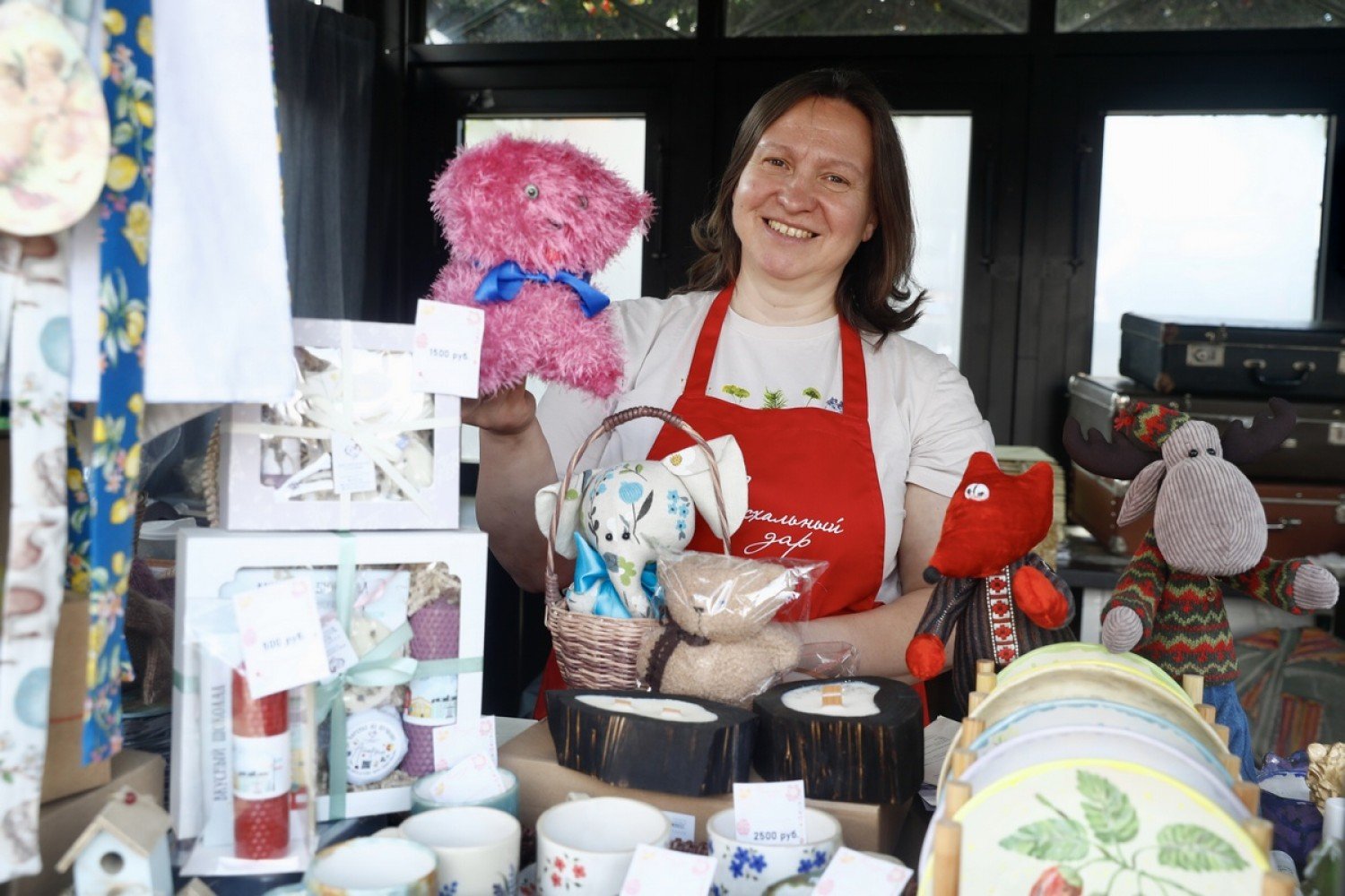 Первое, что бросается в глаза - это шале благотворительной ярмарки. Свои товары здесь предоставили фонды и организации, заботящиеся и помогающие людям с ограниченными возможностями - например, «Дом слепоглухих» в Пучково и «Дорога милосердия». Вся выручка с продажи пойдет непосредственно в бюджеты благотворительных организаций, но помочь можно и безвозмездно - просто сделав пожертвование.
